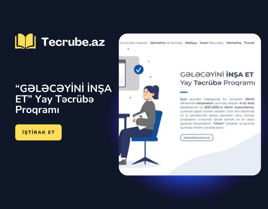 İyun ayından başlayaraq bu proqram tikinti sferasında karyerasını qurmaq istəyən 4-cü kurs tələbələrinə və 2021-2022-ci illərin məzunlarına, aşağıda qeyd olunan sahələr üzrə ofis daxilində və iş sahələrində işlərlə yaxından tanış olmaq, proseslərin icrasında iştirak etmək və ən əsası gələcək karyerasını “Unico” şirkətlər qrupunda qurmaq imkanı yaradacaqdır.