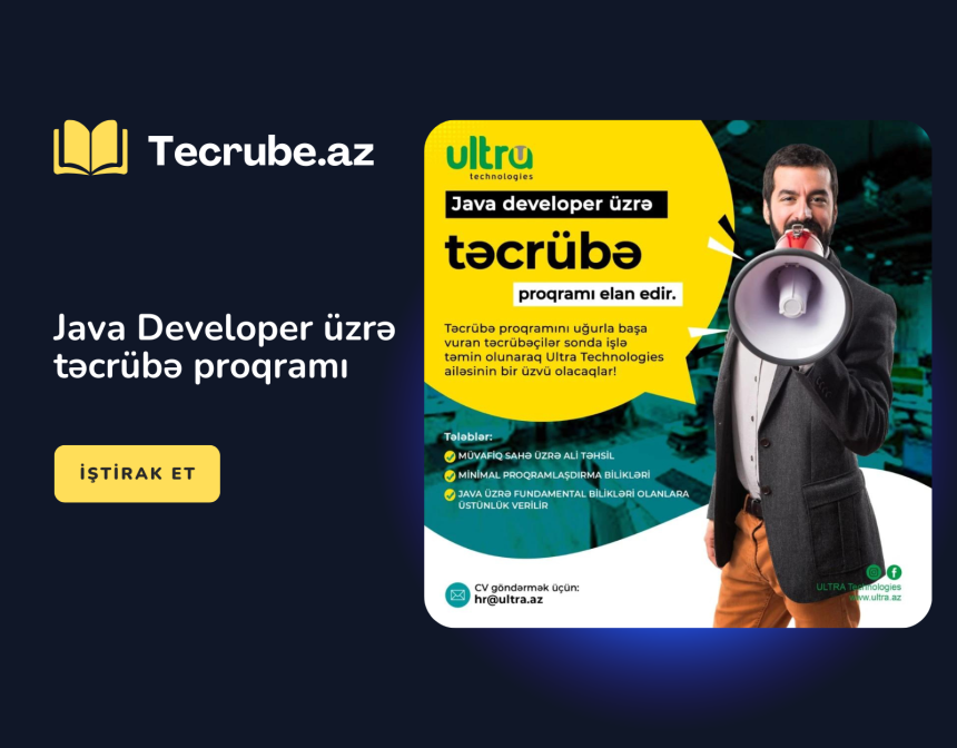 “ULTRA Technologies” şirkəti Java Developer üzrə təcrübə proqramı elan edir.