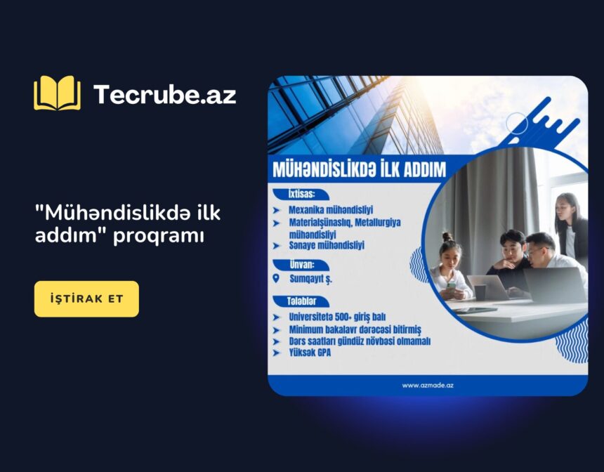 MIA “Mühəndislikdə ilk addım” proqramı çərçivəsində Sənaye, Materialşünaslıq, Metallurgiya, Mexanika mühəndisliyi məzunu gənc mühəndislərə ehtiyacımız vardır.