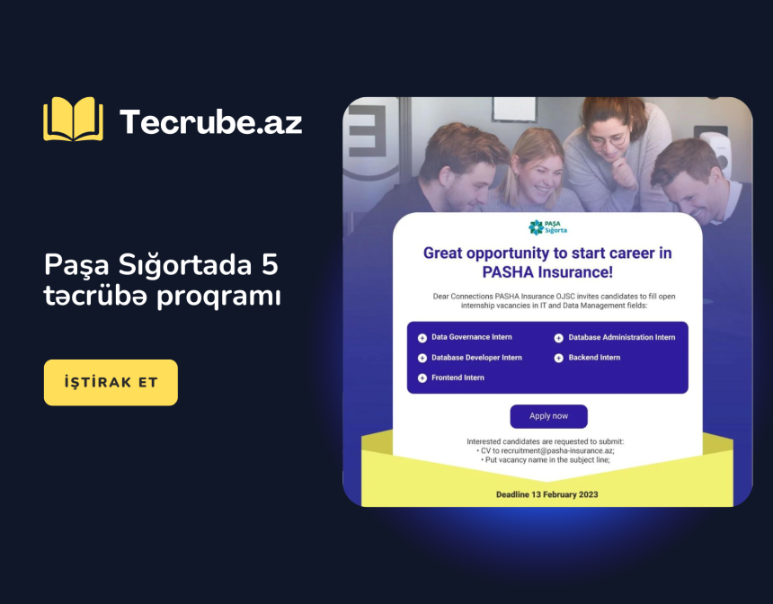 Dear Connections PASHA Insurance OJSC invites candidates to fill open internship vacancies in IT and Data Management fields.