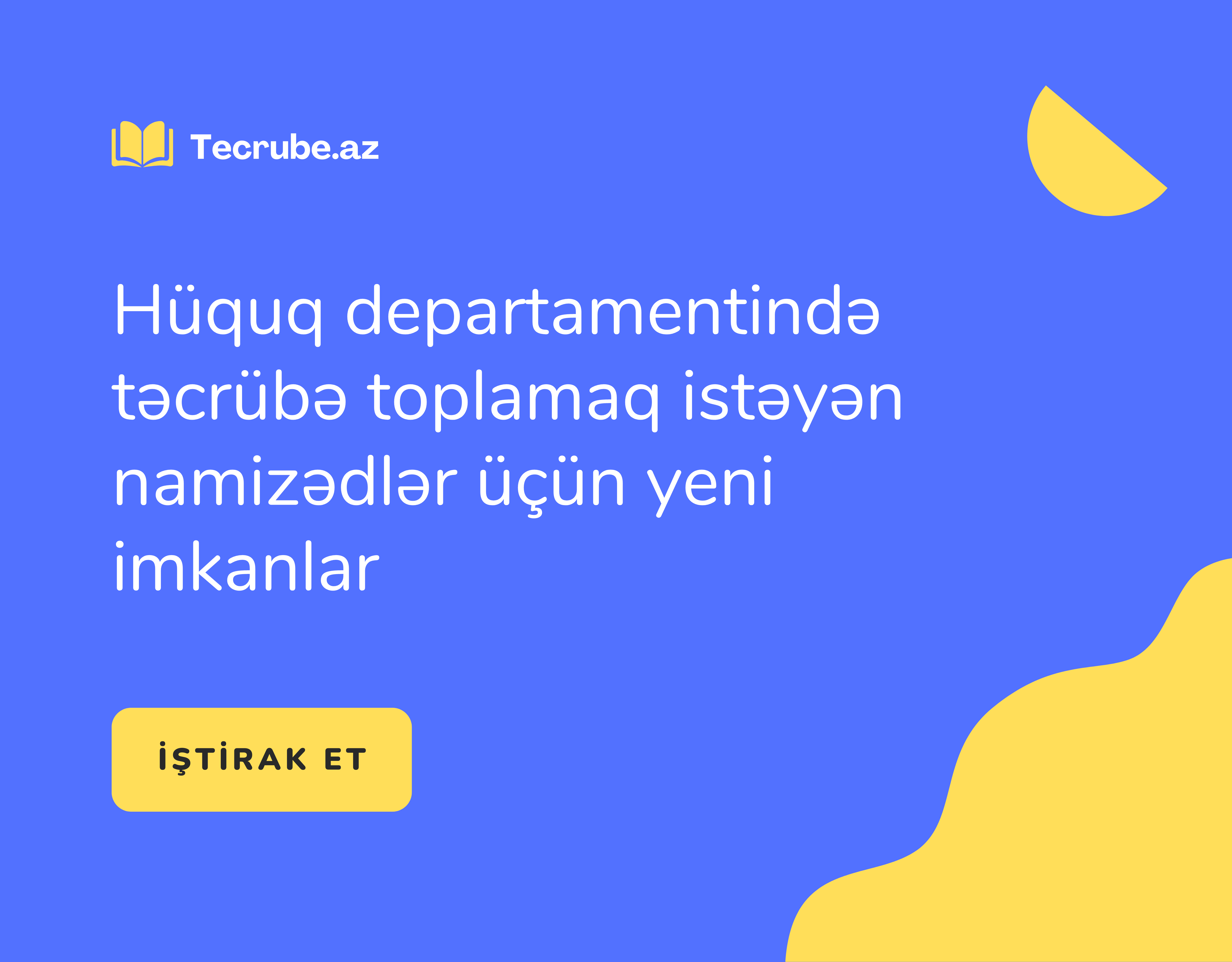 “Rabitəbank” ASC Hüquq departamentində təcrübə toplamaq istəyən namizədlər üçün yeni imkanlar yaradır.