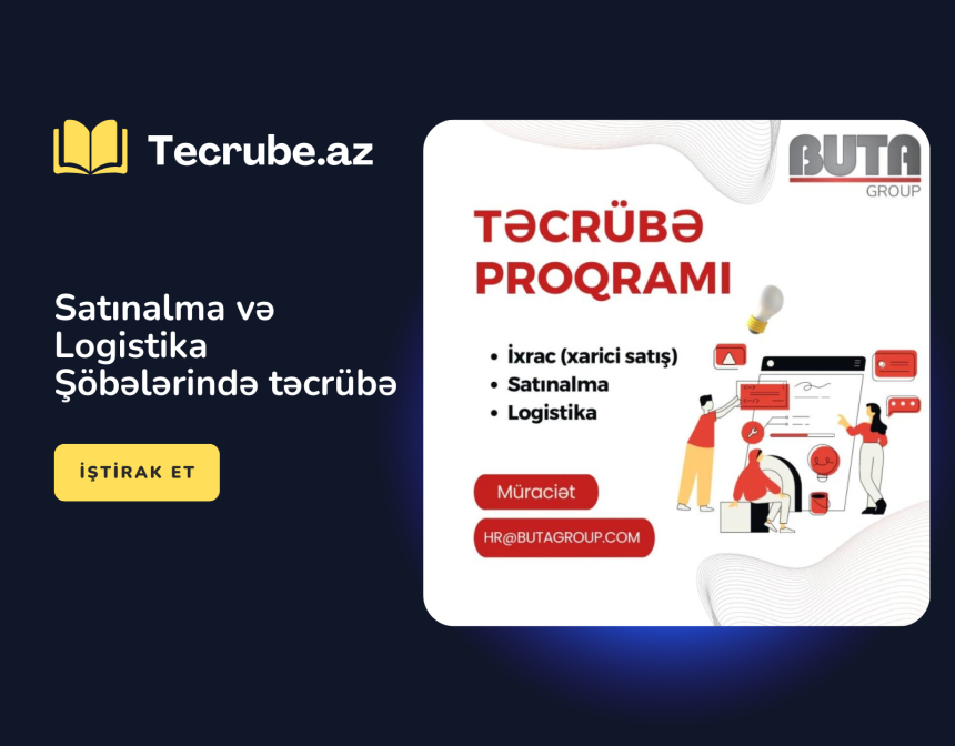 Buta Traidinq MMC Export (xarici satış), Satınalma və Logistika Şöbələrində təcrübə keçib praktiki biliklərə sahib olmaq istəyən yeni məzunları təcrübəyə dəvət edir.