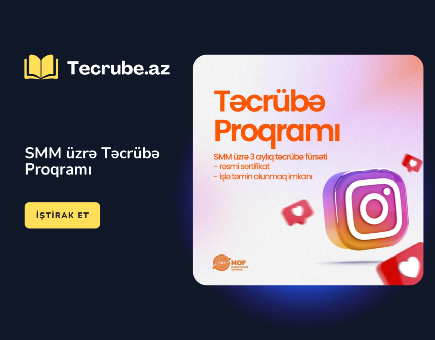 Proqrama qoşulmaq üçün öz CV-nizi markofuniagency@gmail.com elektron poçt ünvanına mövzu(subject) bölməsində “SMM Təcrübə Proqramı” qeyd edərək göndərə bilərsiniz.