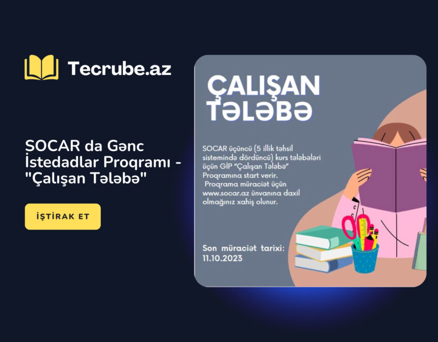SOCAR Azərbaycan Respublikasının və xarici ölkələrin müxtəlif ali məktəblərində təhsil alan Azərbaycan vətəndaşı olan, öyrənməyə həvəsli, şəxsi inkişafı, peşəkar vərdişləri və praktiki biliklərini artırmağa maraqlı olan, təşəbbüskar, komandada işləməyi bacaran, ixtisasını sevən və yüksək ixtisas biliklərinə sahib gənclərin inkişafına dəstək olmaq üçün Gənc İstedadlar Proqramına start verir. Proqrama qoşularaq şirkətimizin peşəkar kadrları ilə birlikdə çalışmaq və bir çox iri layihələrdə iştirak etmək fürsətini əldə etmiş olacaqsınız. Məqsədimiz gənclərin yalnız texniki bacarıqlarını inkişaf etdirmək deyil, həmçinin onları korporativ mühitlə tanış etmək, onlara təşkilati dəyərləri öyrətmək və onları iş həyatına hazırlamaqdır.
