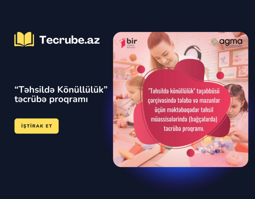 “Bir Könüllü” Tələbə Təşkilatı və Azərbaycan Gənc Müəllimlər Assosiasiyasının birgə əməkdaşlığı ilə “Təhsildə Könüllülük” təşəbbüsünə start verilir. Təşəbbüs çərçivəsində paytaxda və regionlarda fəaliyyət göstərən ali təhsil və orta ixtisas təhsil müəssisələrinin məktəbəqədər təlim və tərbiyə ixtisası üzrə təhsil alan tələbələrinin məktəbəqədər təhsil müəssisələrində (bağçalarda) praktiki fəaliyyətlərə cəlb edilməsi nəzərdə tutulur.
