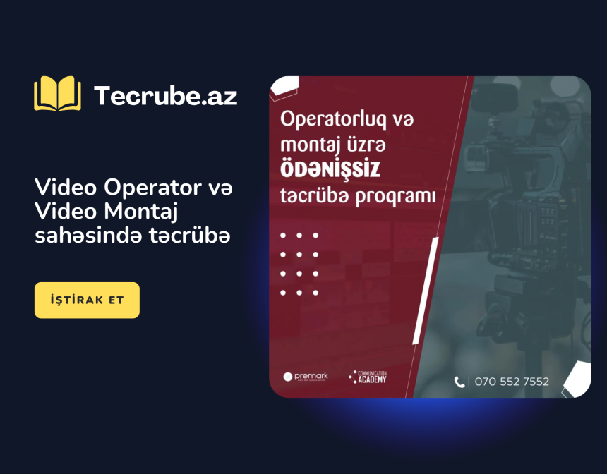 Təcrübə proqramına qoşulmaq üçün CV-nizi “Video üzrə təcrübə proqramına müraciət” başlığı ilə intern@premark.az ünvanına göndərə bilərsiniz.